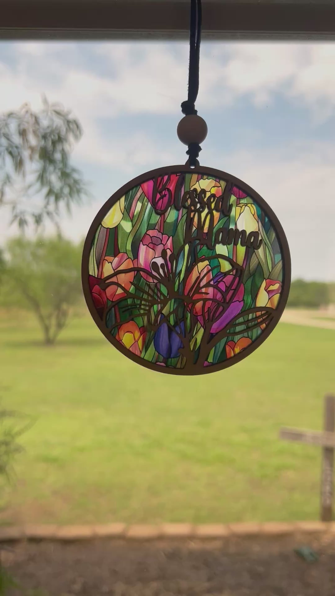 Introducing the Blessed Mama Suncatcher, a delightful fusion of rustic charm and modern elegance that adds a touch of warmth and color to any space. This exquisite suncatcher is not just a piece of decor, but a celebration of motherhood and a perfect gift for the beloved 'Mama' in your life. Crafted with precision, it features a beautiful stained glass effect that dances with light, creating a kaleidoscope of colors that will brighten up any room. Whether you're looking to enhance your home or searching for that perfect rustic decor gift, this suncatcher is a must-have for those who cherish handmade home accents.