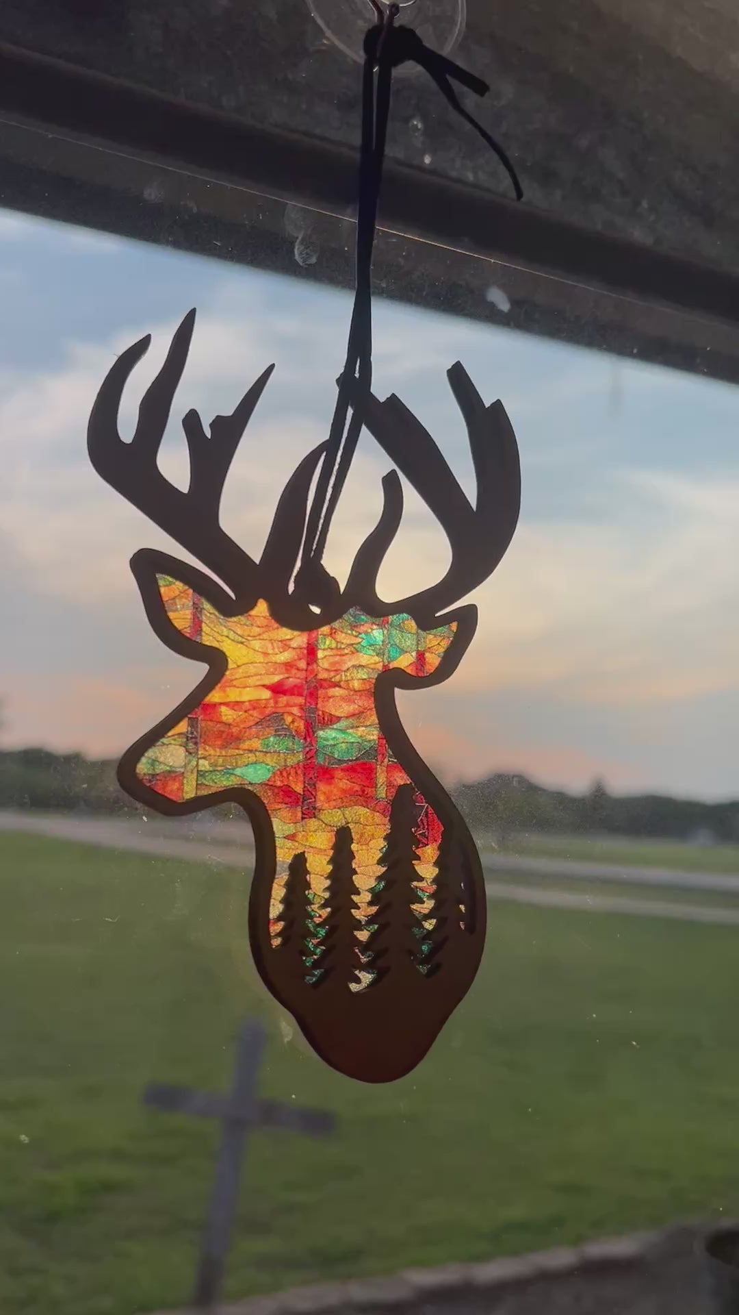 Buck Stained Glass Wood Suncatcher - Rustic Car Charm Gift