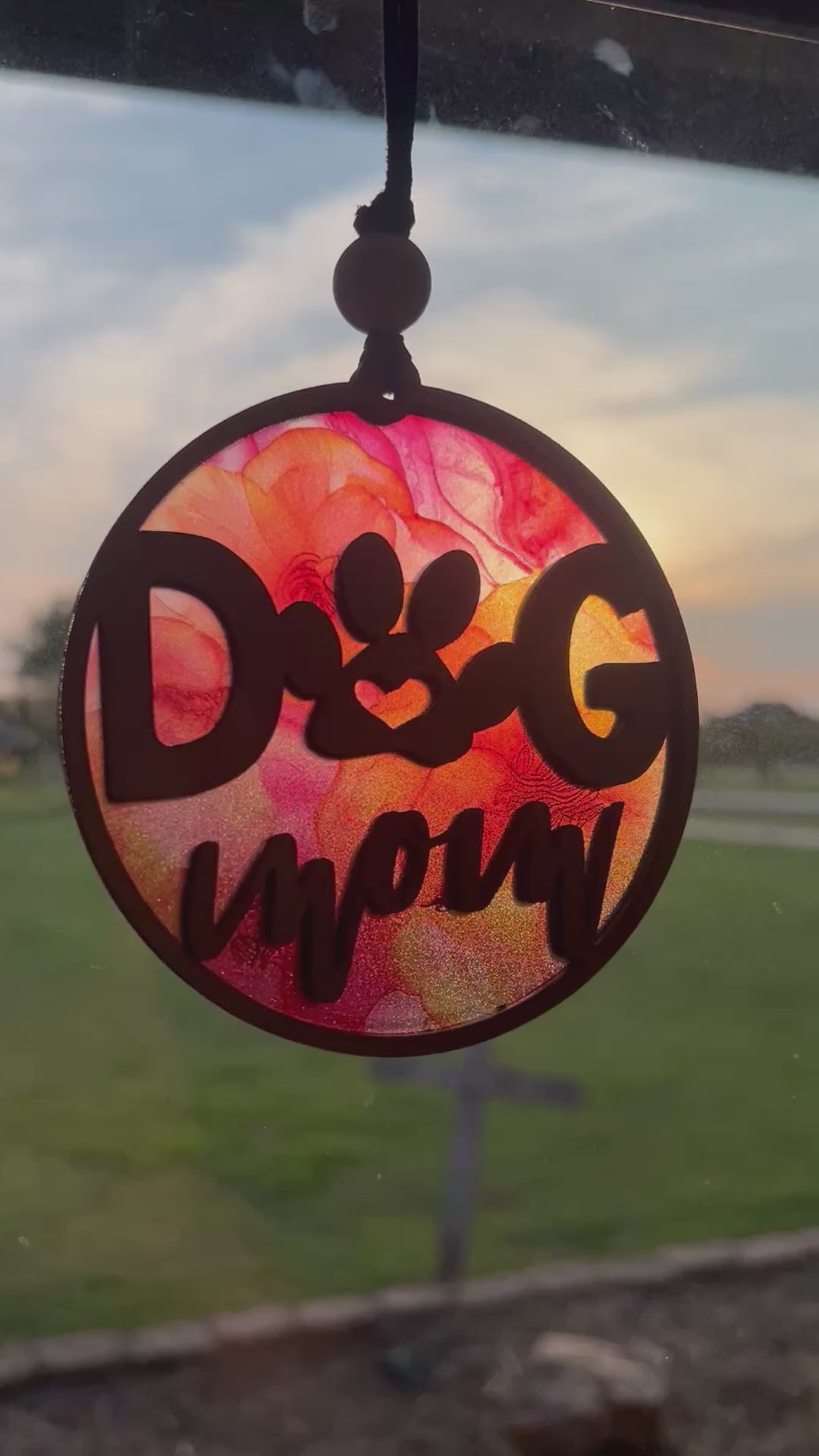 Dog Mom Suncatcher - Rustic Wood & Acrylic, Handmade Charm