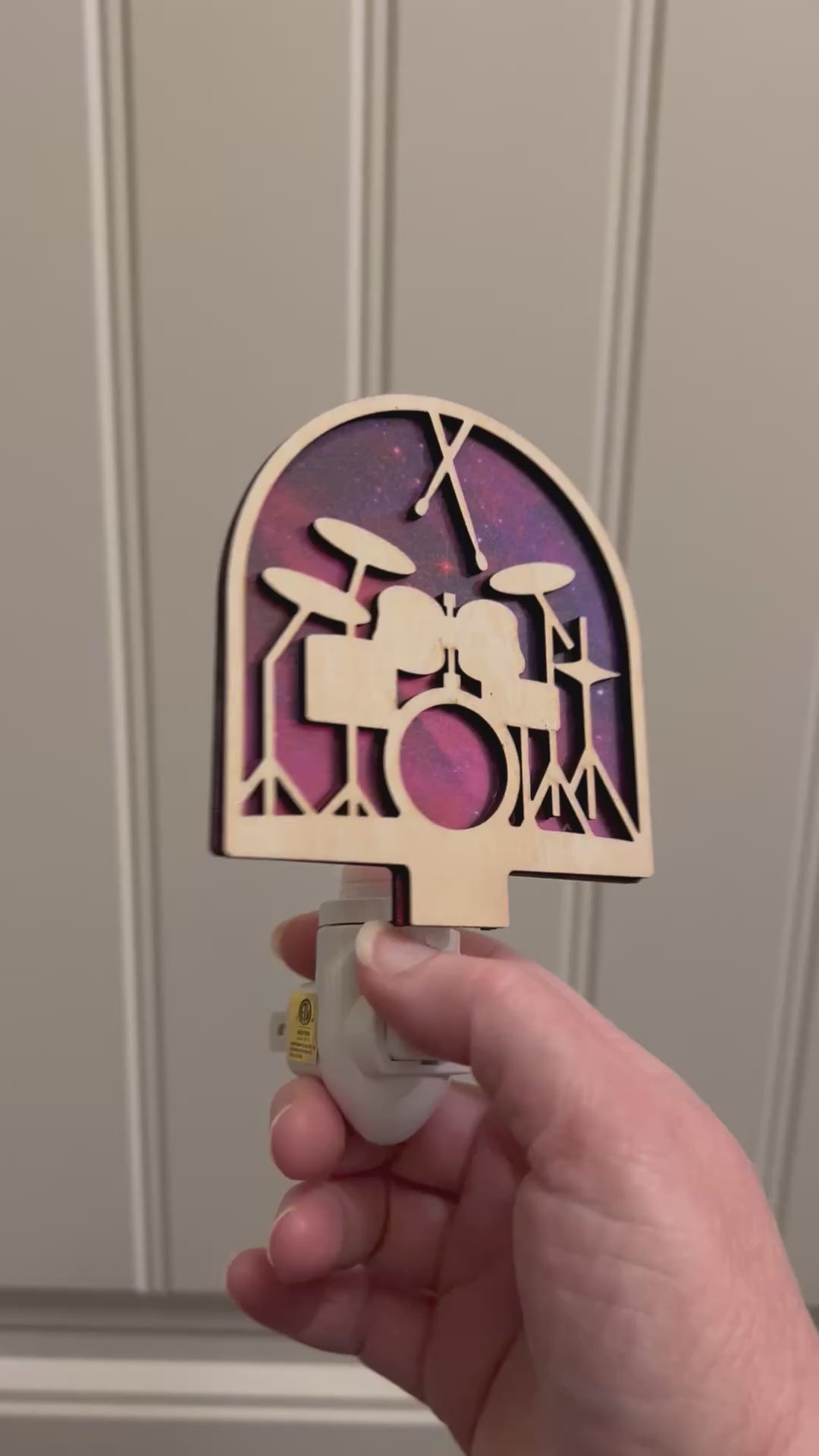 Drums Nightlight - Rustic Wood & Acrylic Stained Glass Effect
