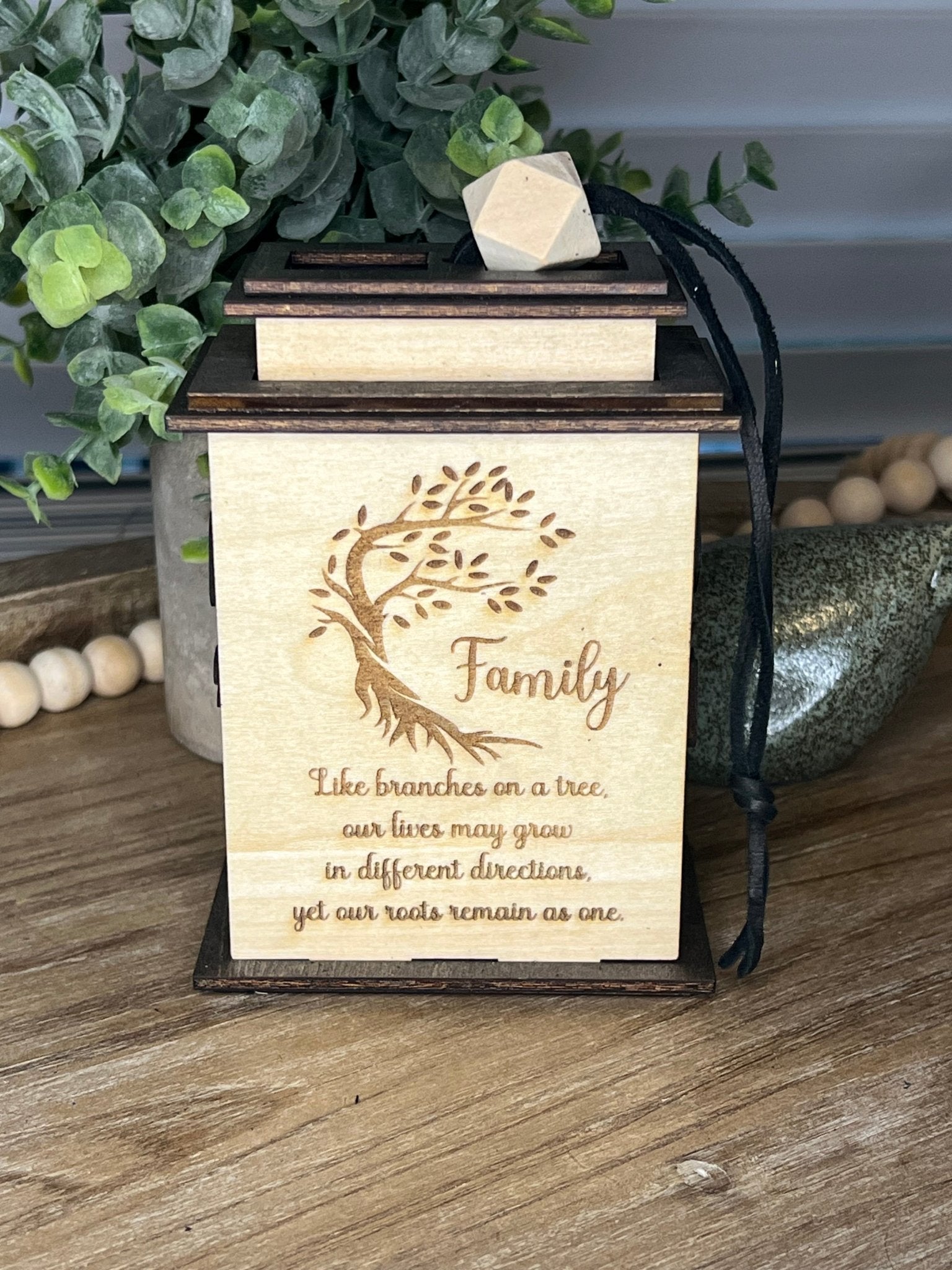 This Family Tree Lantern and Ornament SVG bundle includes both a full-sized freestanding lantern and a 4.5" hanging ornament. Designed for use with Glowforge, xTool, Cricut, and more, this layered file is perfect for holiday gifts, personalized decor, or rustic centerpiece crafting.