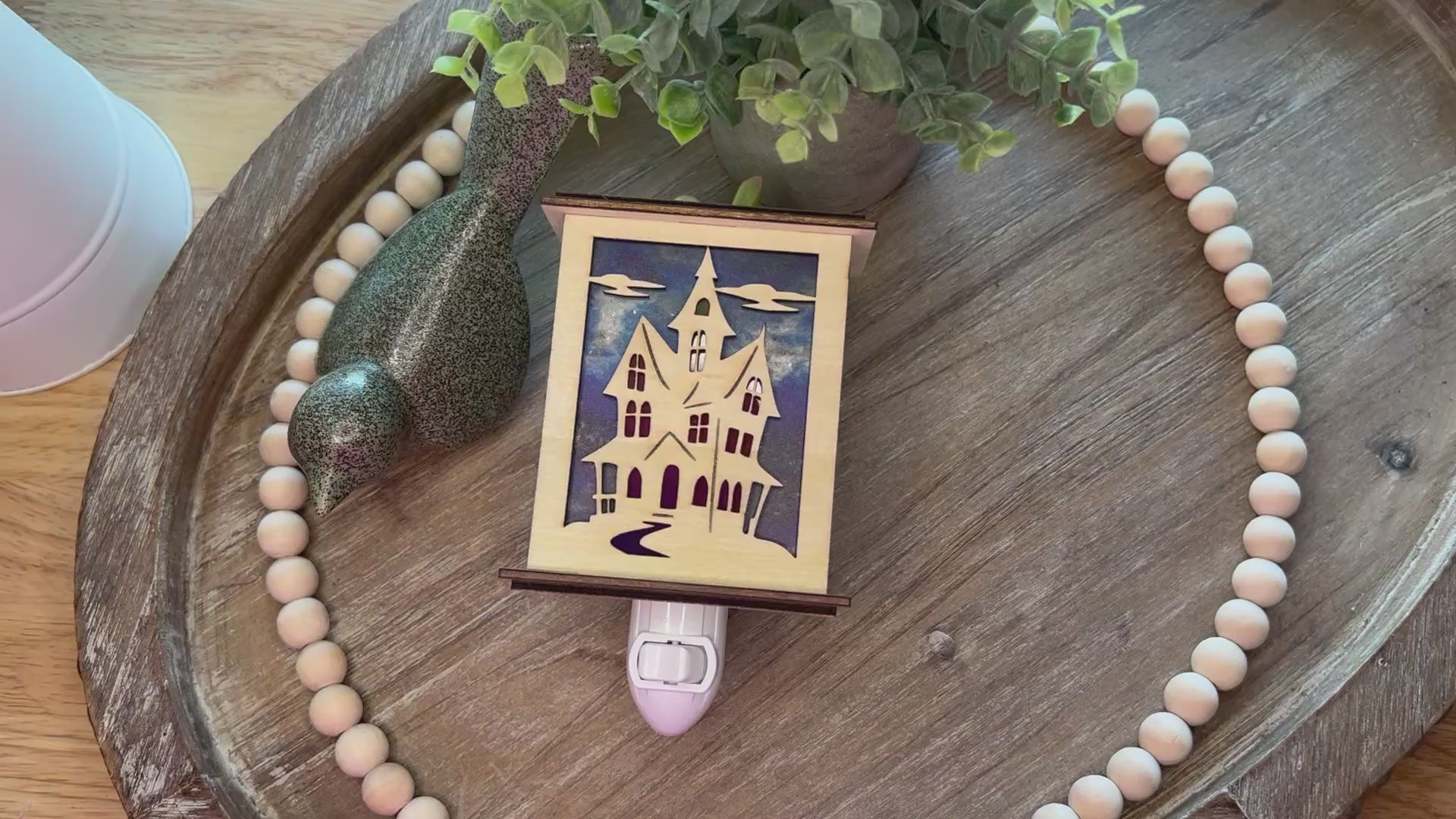 Sized to fit standard LED nightlight bases, this cut file brings a warm and eerie glow to hallways, shelves, and entryways.