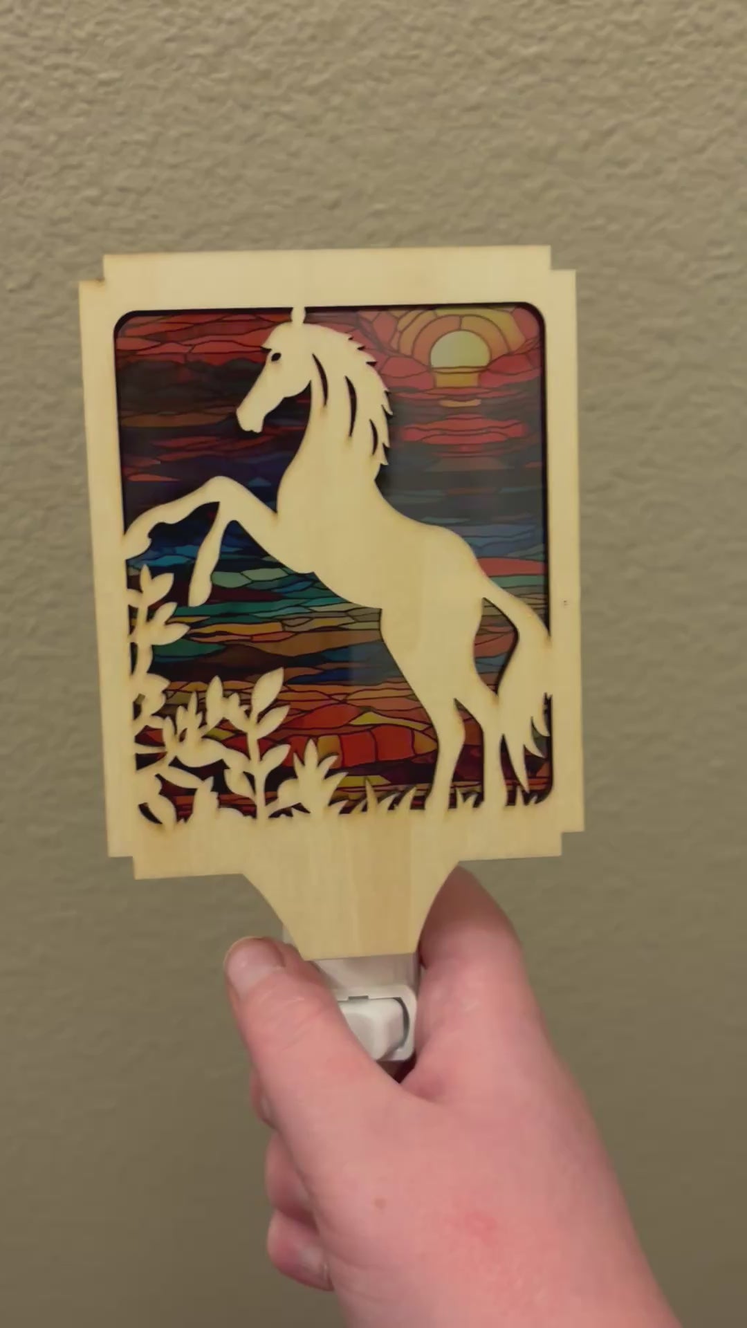 Horse Nightlight - Rustic Wood & Acrylic Stained Glass Effect