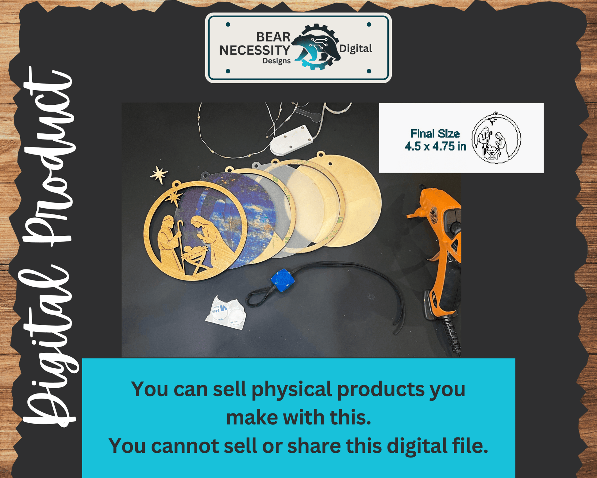 Lighted Nativity Ornament SVG – Layered Christmas Laser Cut File (Digital Download)