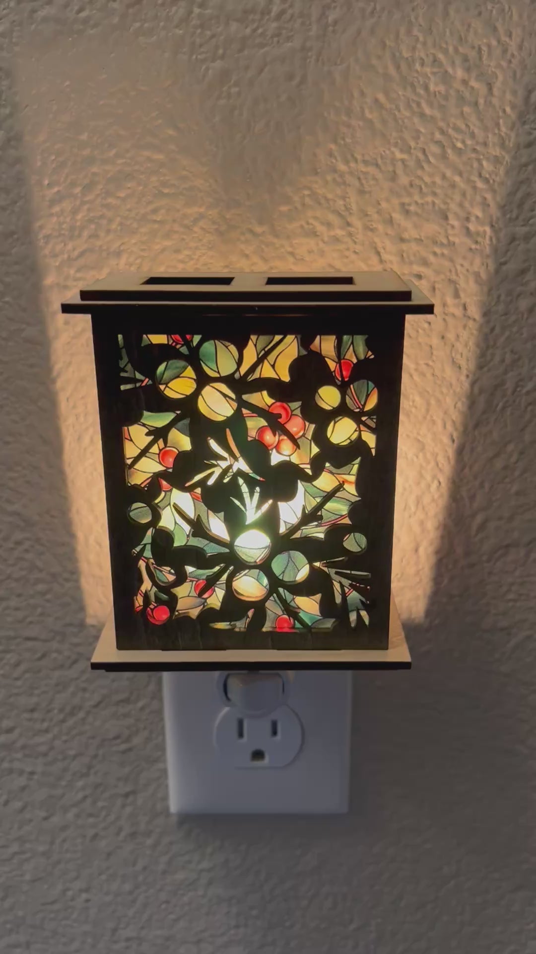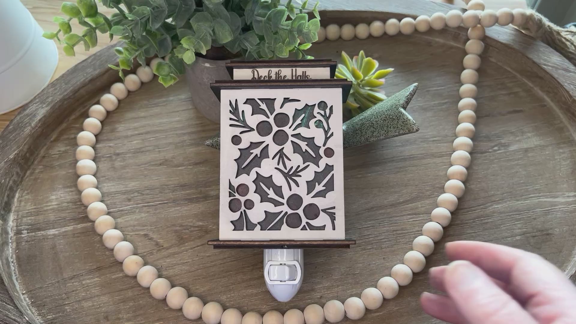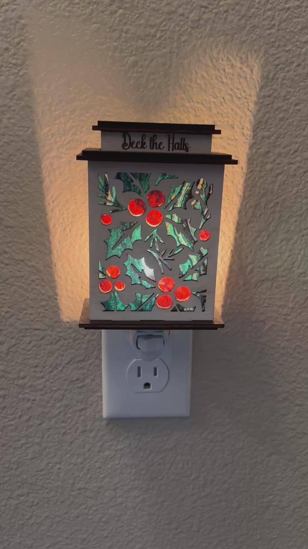 This layered digital cut file is designed for laser cutting machines like Glowforge, xTool, OMTech, Epilog, and Thunder. Create a glowing lantern or plug-in nightlight featuring holly leaves and berries — perfect for handmade Christmas décor, gifts, or craft fair bestsellers.